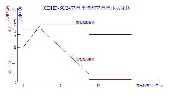 以24V鉛酸蓄電池為例,過程是:接好電池,開啟后,充電電源軟啟動,電壓從21.6V(電池放電下限值)開始上升,充電電流逐步增大到額定恒流值,充電電源進(jìn)入恒流充電過程,此后充電電壓逐漸升至28.2V(均充電壓值),此恒流充電過程一般情況下約需1~2小時;然后,充電電源進(jìn)入均衡充電過程,在此過程中,充電電流逐漸緩慢下降,電源退出恒流工作,此時電源電壓不變,進(jìn)入到恒壓均衡充電狀態(tài),此充電過程約需4~6小時,隨著電流的進(jìn)一步減小到額定電流的十分之一時,電源自動判斷為電池已充好,電源自動轉(zhuǎn)為浮充階段,即輸出電壓將為26.4V,充電電流則進(jìn)一步減小甚至為零,在沒有外部變化情況下,此后電源一直維持這種狀態(tài),補(bǔ)充電池的自耗電。采用這種充電方式能夠較快、均衡的對電池組進(jìn)行充電,充滿后充電電源能自動轉(zhuǎn)換到浮充,維持電池正常電壓避免出現(xiàn)電池過充,從而實現(xiàn)無人值守充電工作方式。